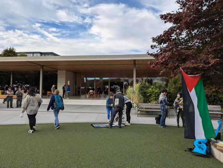 أقدم عشرات النشطاء في ولاية كاليفورنيا الأميركية على الاحتجاج داخل أحد متاجر شركة "آبل" الأميركية، في مدينة سان خويسه، احتجاجا على علاقتها بدولة الاحتلال واتهامها بالمشاركة في الابادة الجماعية التي يرتكبها جيش الاحتلال.