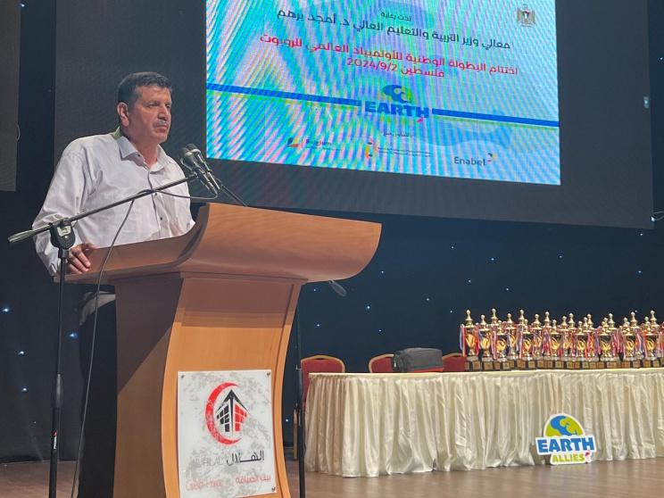 اختتمت وزارة التربية والتعليم العالي، من خلال الإدارة العامة للمصادر والتقنيات والتربوية، وبالتعاون مع وكالة التنمية البلجيكية (Enabel) ومؤسسة شهب لتطوير التعليم والتكنولوجيا المنظم الوطني للأولمبياد العالمي للروبوت، فعاليات البطولة الوطنية للروبوت، والتي عقدت فعالياتها في مسرح الهلال الأحمر الفلسطيني/ البيرة، وذلك بحضور كل من مدير عام التقنيات بسام نعيم، وخبيرة التعليم في وكالة التنمية البلجيكية فداء موسى، والمنظم الوطني للأولمبياد العالمي للروبوت منير عبد ربه، والمراكز الخاصة المشاركة، بالإضافة إلى الطلبة المشاركين وأسرهم.