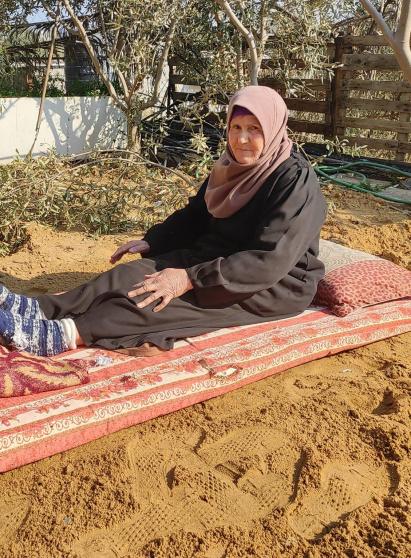 وتحدثت الحاجة عن مرضها، حيث شخص الأطباء إصابتها بجلطة أثناء وجودها في خانيونس، بعد رحلة نزوحها من الشمال إلى رفح، والأنباء السيئة التي تلقتها عن بيتها وجيرانها وأقاربها وموت العديد منهم.
