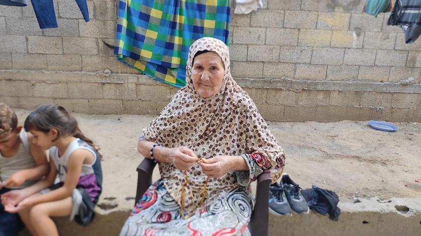 الحاجة فاطمة شحدة "أم أشرف" رغم مرضها، أجبرها الاحتلال الإسرائيلي على النزوح قسرا مرات عديدة، بدءا من بلدة بيت لاهيا شمال القطاع مرورا بغزة ثم في خيام رفح وخانيونس ودير البلح والزوايدة.