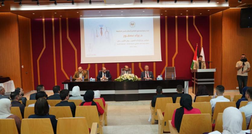 بحضور نائب رئيس الجامعة للشؤون الأكاديمية الأستاذ الدكتور حازم خنفر، وعميد كلية الطب البشري الدكتور مالك زبن، ونائب عميد الكلية الدكتور رامز زيد الكيلاني، وعمداء الكليات، ومدراء الدوائر، وأعضاء الهيئة الأكاديمية في كلية الطب البشري، وعدد من أعضاء الهيئتين الأكاديمية والإدارية، وطلبة كلية الطب.