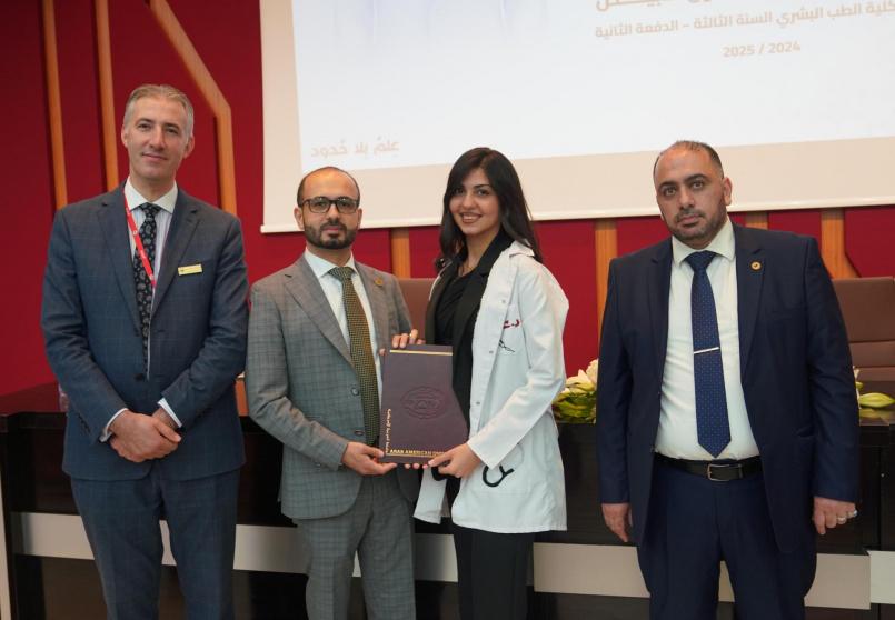 بدوره، هنأ عميد كلية الطب البشري الدكتور مالك زبن الطلبة انتقالهم إلى مرحلة جديدة في المسيرة الأكاديمية بالشروع في التدريب السريري، داعيا الطلبة إلى الجهد والاهتمام والتحلي بالمسؤولية والأخلاق، قائلا لهم، "أنتم الآن سفراء الجامعة العربية الأمريكية"