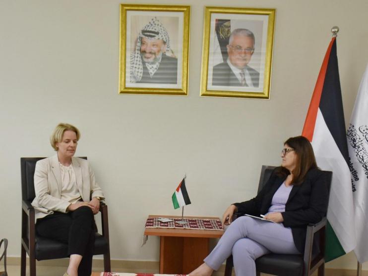 جاء ذلك لدى استقبالها، اليوم الاثنين، في مقر الوزارة بمدينة رام الله، ممثلة الكونفدرالية السويسرية لدى دولة فلسطين آن-ليز كاتيين هاينين.