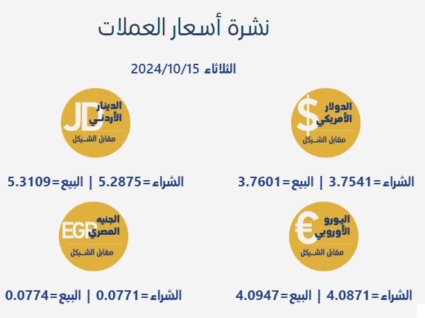 جاءت أسعار صرف العملات مقابل الشيقل الإسرائيلي، اليوم الثلاثاء، بحسب سلطة النقد الفلسطينية، على النحو التالي:
