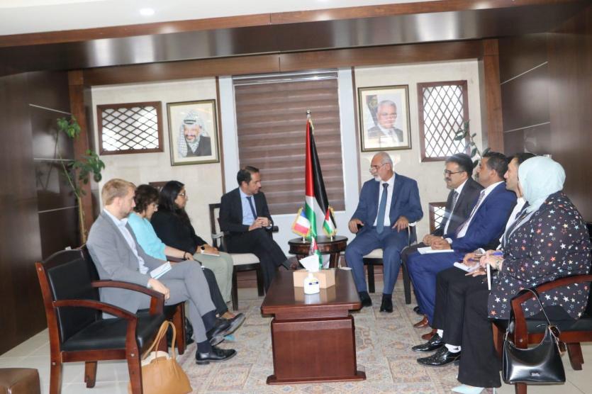 إجتمع معالي وزير الزراعة البروفيسور رزق سليمية في مكتبه اليوم الإثنين في مقر وزارة الزراعة في مدينة رام الله مع سعادة القنصل الفرنسي العام في الأراضي الفلسطينية السيد نيكولاس كاسيا نيدس، ومدير الوكالة الفرنسية للتنمية فيرونيك سوفا، ورئيسة القسم الإقتصادي في القنصلية إيميل موريل، كما وحضر الإجتماع عطوفة وكيل وزراة الزراعة م. بدر الحوامدة، ومدير عام العلاقات الدولية م. محمود فطافطة، ومدير دائرة المشاريع م. مرام صوالحة.