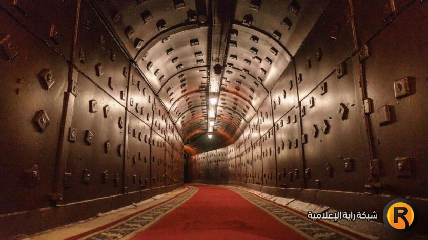 وبعد النزول إلى الطابق السفلي، ينفتح أمام الزوار ممر طويل بسجادة حمراء. وهنا يمكنك سماع ضجيج القطارات التي تمر عبر أنفاق المترو، حيث يقع المخبأ على نفس مستوى الخط الدائري لمترو موسكو.
