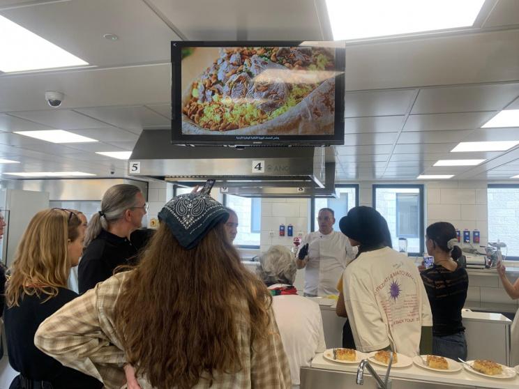 وقد شملت الزيارة ورشةً في طريقة طبخ المأكولات الفلسطينية التراثية الأصيلة؛ قدمها الشيف باسم حزبون، حيث تعلمَ الوفد الضيف طريقة عمل المنسف الفلسطيني والهريسة الفلسطينية، كما شملت الزيارة جولة في حرم الجامعة، اطلع الوفد خلالها على مباني الجامعة ومرافقها، والمعارض الفنية التي تحتضنها، وزار متجر الهدايا الذي يضم أعمالًا فنية وتراثية مصنوعة من الخزف والزجاج والمعادن الثمينة.