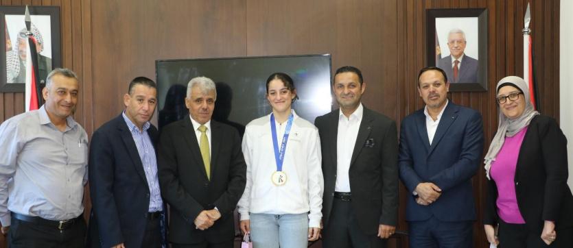 كرمت وزارة التربية والتعليم العالي؛ اليوم، بطلة العالم في الكاراتيه الطالبة مريم بشارات الحاصلة على الميدالية الذهبية في بطولة العالم للناشئين مؤخراً في إيطاليا.