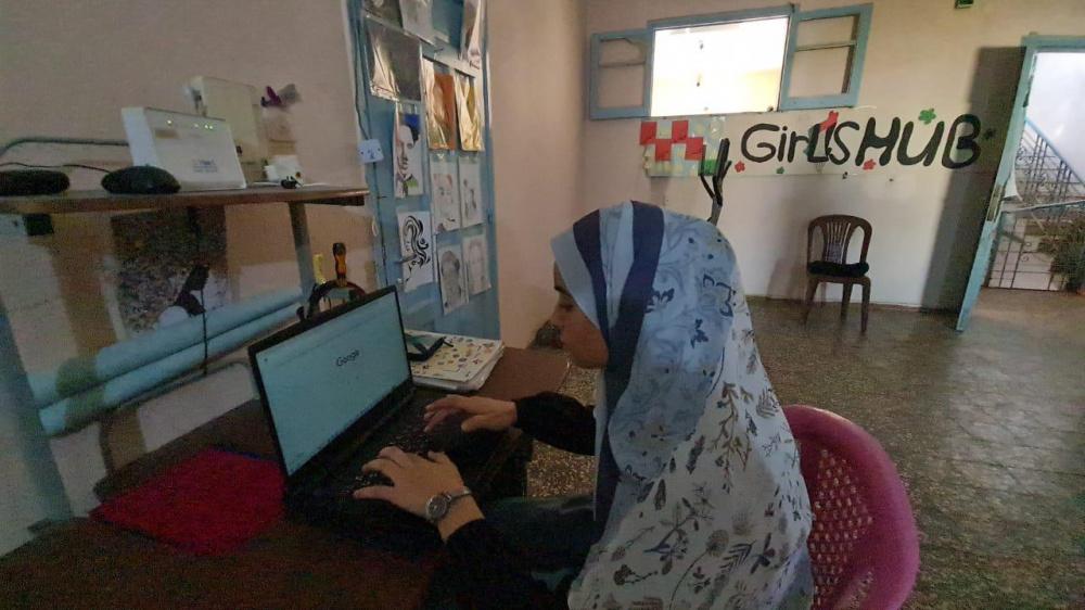تتحدث مها التي تعمل كمهندسة وفقدت عملها مع إحدى الشركات بالخارج بالعمل الحر عن مشروعها الذي أطلقت عليه اسم " girl hub” والذي خصصته لخدمة شريحة الفتيات الجامعيات اللواتي يواجهن صعوبة في أماكن النزوح والخيام لعدم توافر الطاقة الشمسية والإنترنت الجيد وتقول "إن المكان مهيىء وفق الاحتياجات اللوجستية بالكامل من مقاعد وكهرباء وإنترنت وخدمات " .