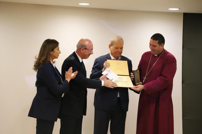 وسلّم رئيس المجلس الوطني روحي فتوح، ورئيس مجلس الإدارة أحمد صبح، ورئيسة لجنة الجائزة علا عوض، مجسم الجائزة وبراءتها وشيك الجائزة، للمطران حسام نعوم رئيس أساقفة الكنيسة الإنجيلية الأسقفية في الأراضي المقدسة (المشرف على المستشفى).