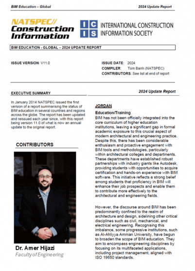 حيث يعد هذا الإنجاز الأكاديمي الفريد من نوعه محطة مهمة، والذي جعل جامعة عمان الأهلية الجامعة الوحيدة في الأردن، وفي المنطقة العربية بأكملها، التي تم إدراجها في هذا التقرير. ويعزز هذا الإنجاز مكانة الأردن وجامعة عمان الأهلية كمساهم رئيسي في مجال نمذجة معلومات البناء (BIM) على الصعيد الإقليمي، ويضع الجامعة كمركز للشراكات الأكاديمية مع القطاعات الحكومية والخاصة.