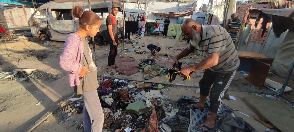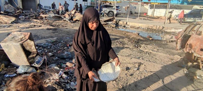 وكذلك زوجته الأربعينية، قالت: "الحرب كبرتني 20 سنة، فش عنا اشي، الخيمة كلها انحرقت، يا رب يوقف معنا أولاد الحلال والقلوب الرحيمة، يطلعوا لنا بعين الرحمة، نجيب عفش وخيمة وأواعي تسترنا أنا وبناتي السبعة وبنتي مرت الشهيد وبنتها.. الحمد لله على كل شيء، الحمد لله". ختمت أم محمد ثم تركتنا ذاهبة خلف زوجها نحو بقايا الخيمة المُحترقة علّهم يتعثرون بقطعة ناجية من الحريق.