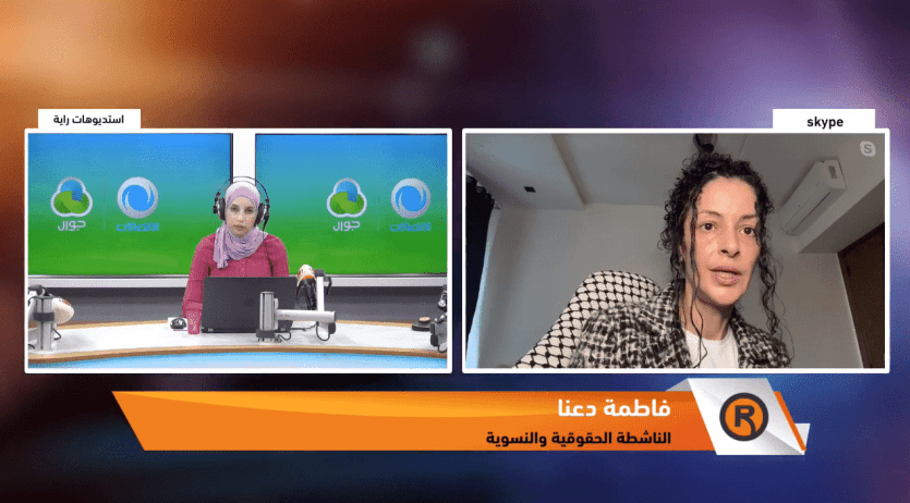 الناشطة المقدسية دعنا هي زوجة الشهيد رائد نزال؛ تحدثت لبرنامج "ضيف الراية" عبر شبكة رايـــة الإعلامية عن مشوارها الطويل في نصرة قضايا المرأة والطفل والقضايا الحقوقية لأبناء شعبنا الفلسطيني.