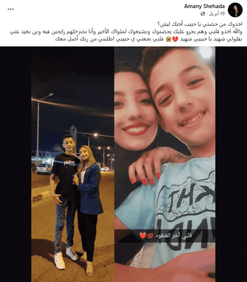 وأضافت: "الدنيا كسرتني أنا وماما وخواتي بمحمد وهلأ في بابا.. ظهري مكسور، حمل الدنيا كلها فوق جسمي، وأنا من جوا فارغة من بعدكم.. بحبكم وهنلتقي قريب يا حبايبي بعرف مش هتتركونا بنات هيك".