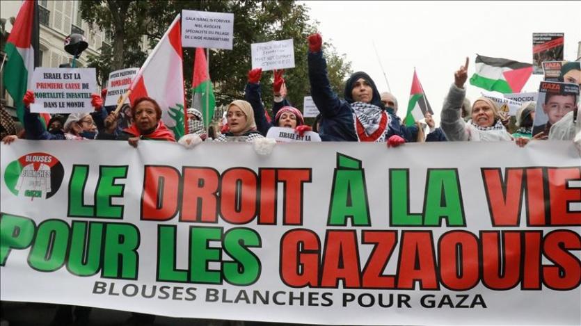 شارك المئات في مظاهرة بالعاصمة الفرنسية باريس للتعبير عن تضامنهم مع الفلسطينيين في قطاع غزة ضد الإبادة الجماعية التي يرتكبها الاحتلال الإسرائيلي.