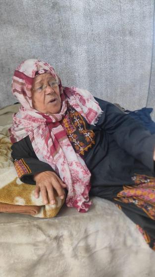 ولا تستطيع الحاجة فاطمة السير على أقدمها، لتستخدم أدوات مساعدة للتحرك ولو لأمتار قليلة في طريقها لقضاء حاجتها أو الجلوس على باب الخيمة على الأقل، كما تشتكي من قلة الغذاء والدواء خاصة للأمراض المزمنة.
