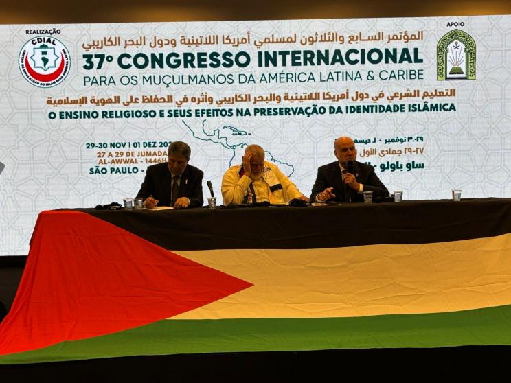 اختتم الوفد الفلسطيني المشارك في فعاليات المؤتمر الدولي لمسلمي أمريكا اللاتينية ودول البحر الكاريبي بنسخته السابعة والثلاثين والذي ينظمه مركز الدعوة الإسلامي في البرازيل بإقامة الندوة السنوية حول القضية الفلسطينية تحت عنوان " ندوة القدس " وإقامة معرض صور فوتوغرافي وعرض فيديو وثائقي يوثق الجرائم الإسرائييلة وحرب الإبادة والتطهير العرقي التي تنفذها دولة الاحتلال بحق شعبنا الفلسطيني في قطاع غزة والضفة الغربية والقدس المحتلة، بمشاركة وفود عربية وإسلامية ورجال الفكر والسياسة ورجال الدين من مختلف أنحاء العالم الإسلامي.