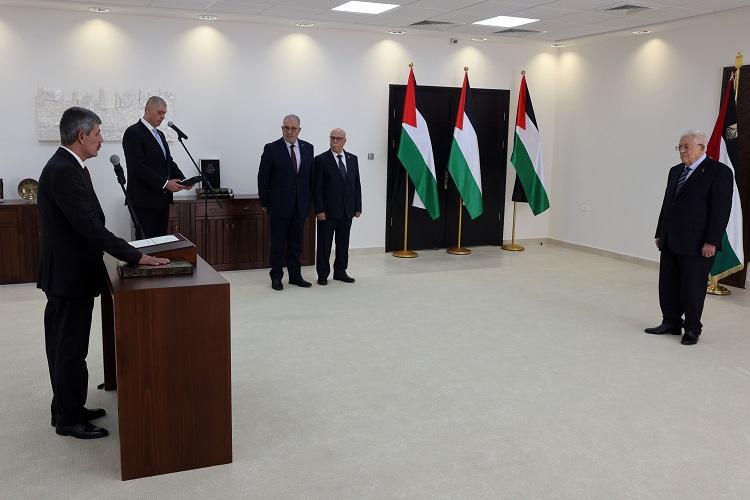 أدى القاضيان نجوى أحمد علي عبد الله، ومحمد زهير جودي اسعيد، اليمين القانونية، أمام رئيس دولة فلسطين محمود عباس، قضاة للمحكمة الدستورية العليا.