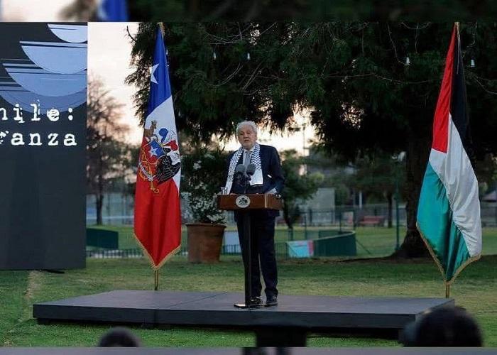 وأكد الرئيس التشيلي، في كلمته خلال الفعالية، التزامه بحقوق الشعب الفلسطيني، وقال: "لن نكون متفرجين صامتين أمام كل هذا الظلم والألم"، مضيفا أن "ما يفعله بنيامين نتنياهو هو جريمة حرب، وجريمة ضد الإنسانية".