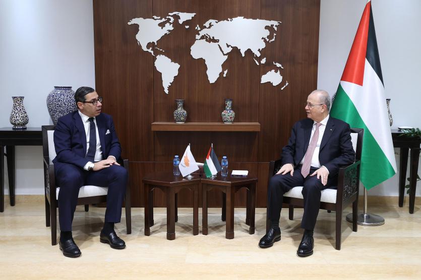 بحث رئيس الوزراء وزير الخارجية محمد مصطفى، مع وزير خارجية جمهورية قبرص كونستانتينوس كومبوس، آخر المستجدات وجهود وقف العدوان على شعبنا وتعزيز الجهود الاغاثية والإنسانية في قطاع غزة.