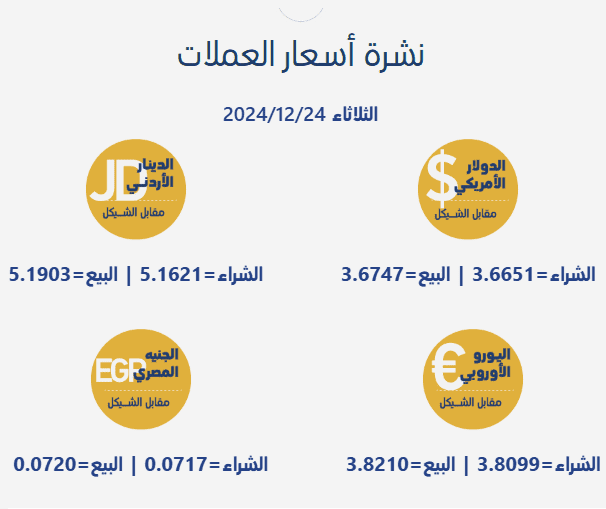 جاءت أسعار صرف العملات مقابل الشيقل الإسرائيلي، اليوم الثلاثاء، بحسب سلطة النقد الفلسطينية، على النحو التالي: