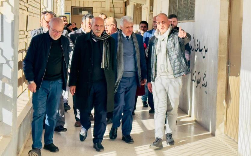 تفقد وزير التربية والتعليم العالي د. أمجد برهم، اليوم الأحد، سير العلمية التعليمية في مدرسة طارق بن زياد في تربية الخليل، للاطلاع على واقع الانتهاكات التي تعرضت لها المدرسة من جيش الاحتلال.