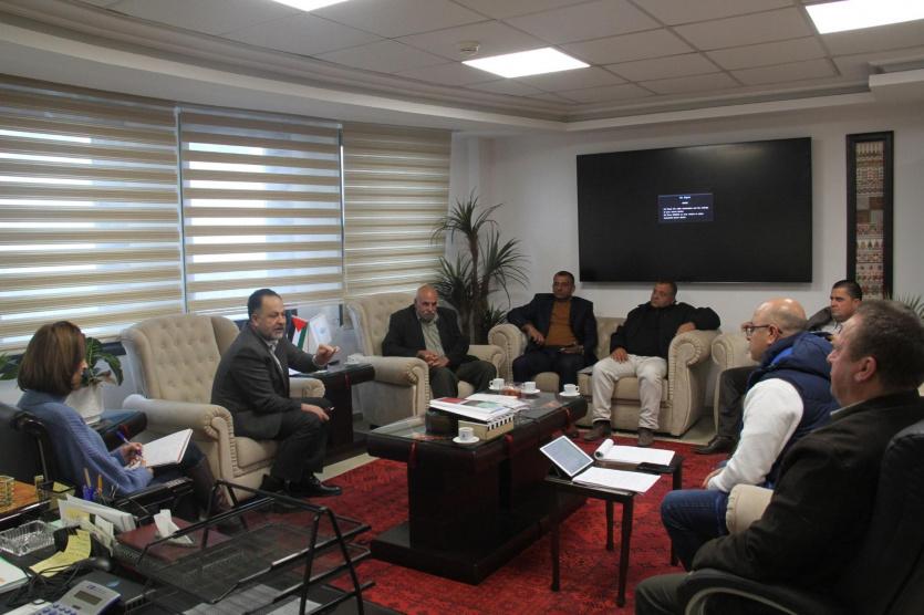 التقى رئيس سلطة المياه د. زياد ميمي اليوم مع ممثلي لجنة الحيلة في منطقة ممثلة بالسيد موسى مخامرة ومحمد حجازي ويوسف مخامرة لبحث مطالب المجتمع المحلي فيما يتعلق بتنفيذ التزامات الحكومة التي تم التعهد بها في الاتفاقية الموقعة بينهما كاطار تفاهم لتنفيذ مشروع محطة المعالجة وتشمل شبكة مياه وصرف صحي وتشغيل مشروع خط واد السمن في العمل بمشروع خط واد السمن والتعاون لتجاوز الإشكاليات من جميع الأطراف، وشارك في اللقاء من سلطة المياه مدير عام المشاريع م. زياد ضراغمة ومدير مشروع الخليل م. مراد فقهاء ومدير عام التخطيط م. عادل ياسين، وم. روان اسعيد الخبير المؤسساتي لمشاريع البنك الدولي