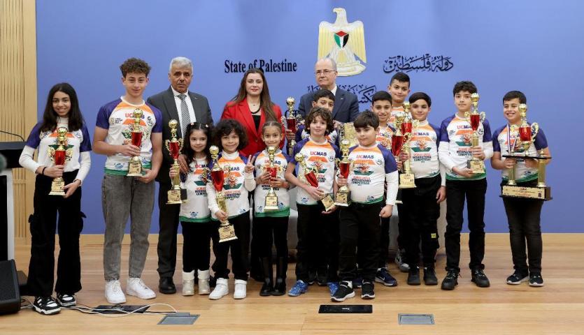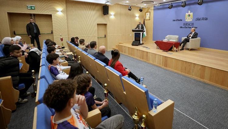 جاء ذلك خلال استقباله اليوم الاثنين في مكتبه برام الله، الطلبة الفائزين وذويهم بحضور وزير التربية والتعليم العالي أمجد برهم، ومدير عام يوسي ماس فلسطين بنان خليفة.