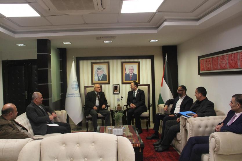 التقى رئيس سلطة المياه د. زياد الميمي في مكتبه اليوم وزير الحكم المحلي د. سامي حجاوي، يرافقه المستشار القانوني اسلام الطويل ومدير عام الإعلام صايل حنون، ومن سلطة المياه م. زياد ضراغمة مدير عام المشاريع، وزياد الفقهاء مدير عام التدريب والتطوير ، وم. روان اسعيد الخبير المؤسساتي لمشاريع البنك الدولي، و فادي نوفل مدير عام الشؤون الإدارية في دائرة مياه الضفة الغربية لبحث جملة من القضايا المشتركة وأهمها متابعة قضية حجم المديونية المرتفع على الهيئات والبلديات لصالح الحكومة، حيث وصل حجم الديون لصالح المياه مليار و700 مليون شيقل، وتتراكم هذه المديونية على العديد من البلديات وخاصة البلديات الكبرى التي لا تتخذ الإجراءات اللازمة لتسديد المديونية المترتبة عليها.