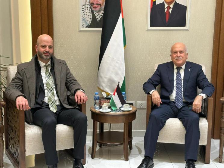 التقى معالي وزير الاقتصاد الوطني يوسف العامور ورئيس الاتحاد الفلسطيني لشركات التأمين السيد حمزة شروف لمناقشة التحديات التي تواجه قطاع التأمين وسبل تعزيز دور التأمين في الاقتصاد الوطني.