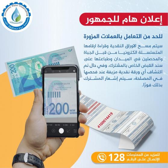 مصلحة مياه محافظة القدس تعلن عن بدء تسجيل الأرقام التسلسلية للعملات الورقية لضمان الشفافية والحد من التزوير