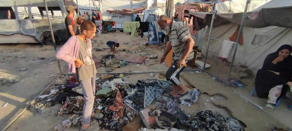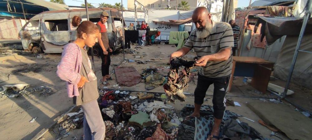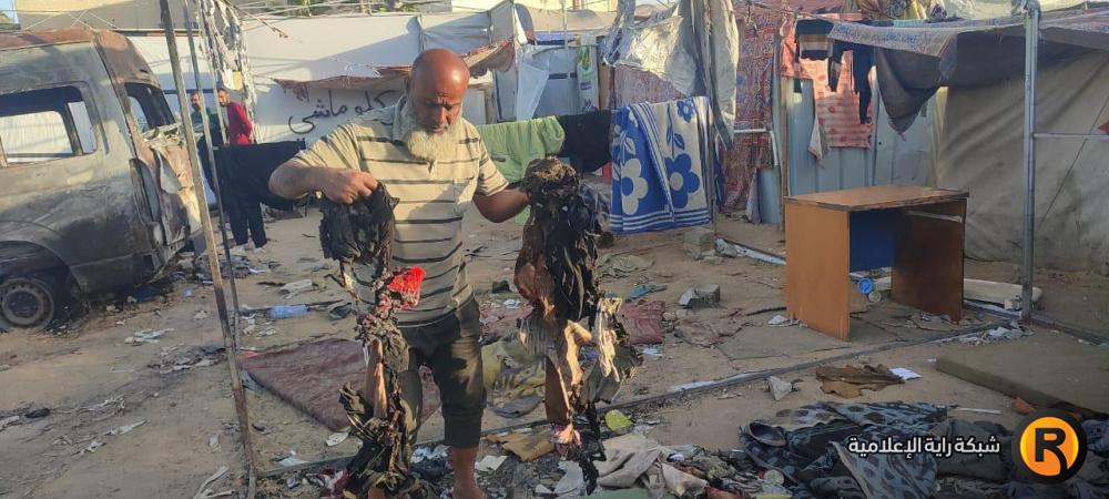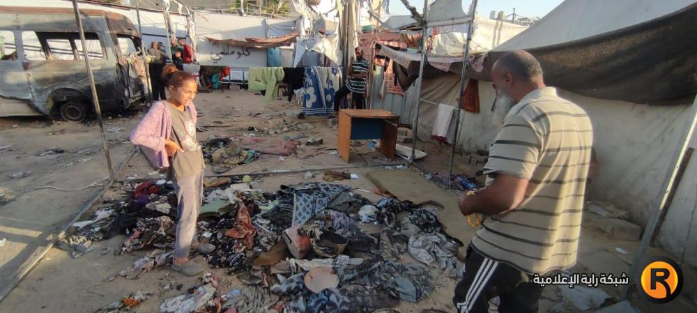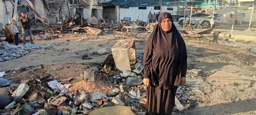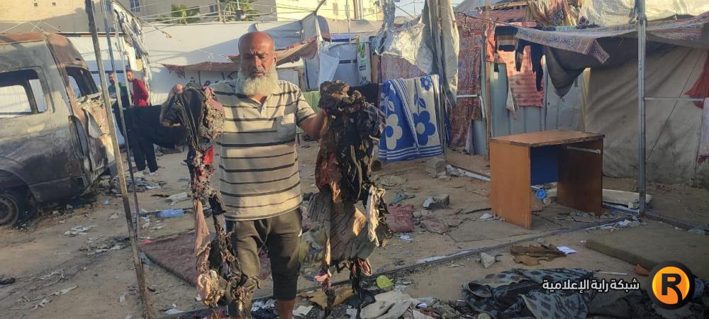 وكذلك زوجته الأربعينية، قالت: "الحرب كبرتني 20 سنة، فش عنا اشي، الخيمة كلها انحرقت، يا رب يوقف معنا أولاد الحلال والقلوب الرحيمة، يطلعوا لنا بعين الرحمة، نجيب عفش وخيمة وأواعي تسترنا أنا وبناتي السبعة وبنتي مرت الشهيد وبنتها.. الحمد لله على كل شيء، الحمد لله". ختمت أم محمد ثم تركتنا ذاهبة خلف زوجها نحو بقايا الخيمة المُحترقة علّهم يتعثرون بقطعة ناجية من الحريق.