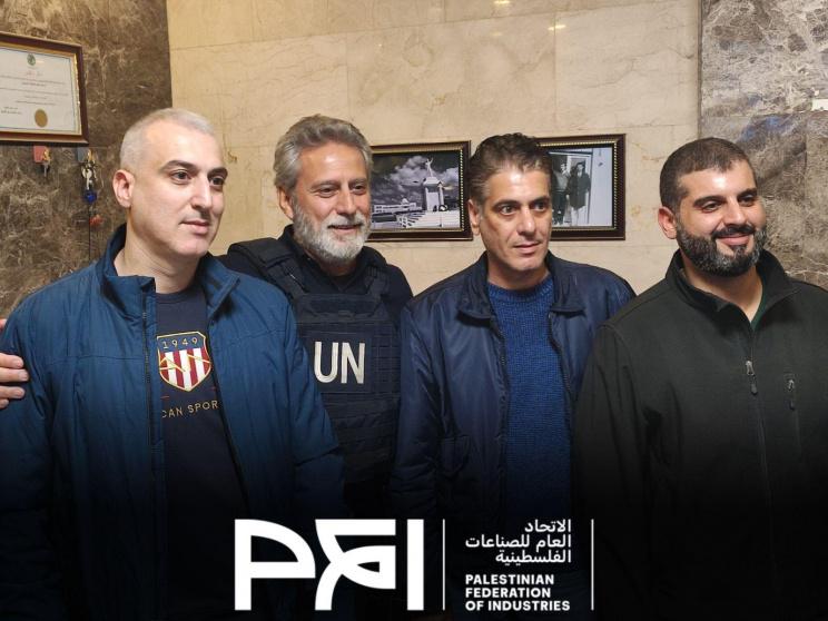 استقبل الاتحاد العام للصناعات الفلسطينية أمس، الاحد ، السيد مهند هادي نائب المنسق الخاص ومنسق الشؤون الإنسانية والمنسق في مكتب المنسق للأمم المتحدة والخاص لعملية السلام بالشرق الأوسط ومدير undp السيد اليساندرو ومنسقى المشاريع في undp والوفد المرافق لهم حيث كان في استقبالهم الاتحاد العام للصناعات الفلسطينية في قطاع غزة المهندس ماهر العجل ومدير شركة مخابر العائلات السيد سمير شحادة والسيد غطاس حاكورة حيث تم ترتيب زيارة لمخبر العائلات بقطاع غزة حيث استمع السيد هادي للإشكاليات التي تواجه المصانع بشكل عام وقطاع المخابر بشكل خاص .