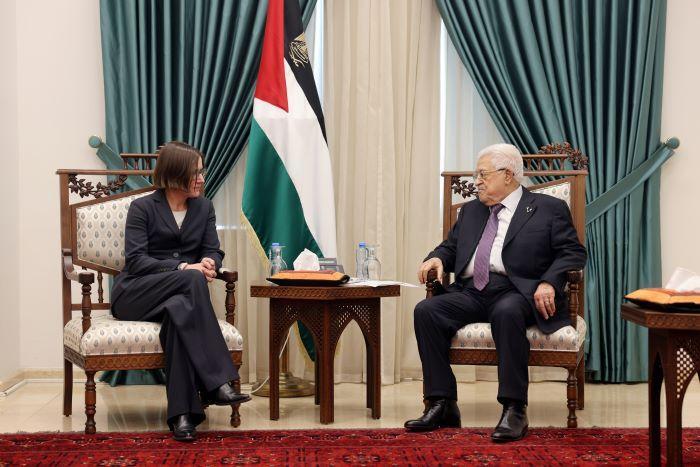 استقبل رئيس دولة فلسطين محمود عباس، اليوم الخميس، في مقر الرئاسة بمدينة رام الله، رئيسة اللجنة الدولية للصليب الأحمر ميريانا سبولياريتش، بحضور رئيس جمعية الهلال الأحمر يونس الخطيب.