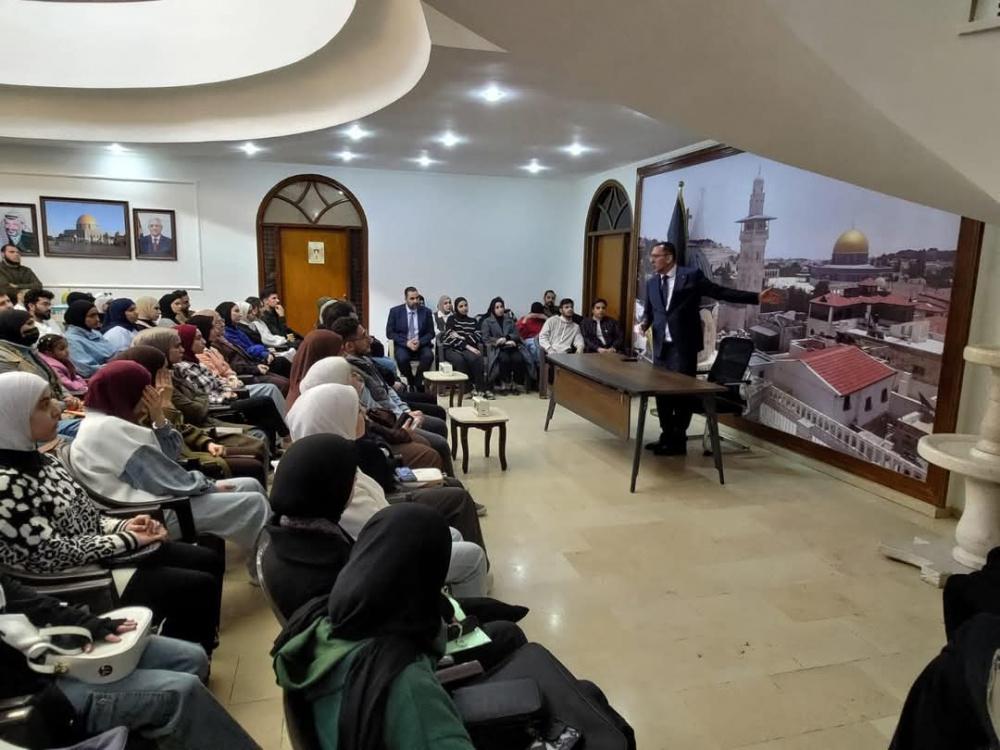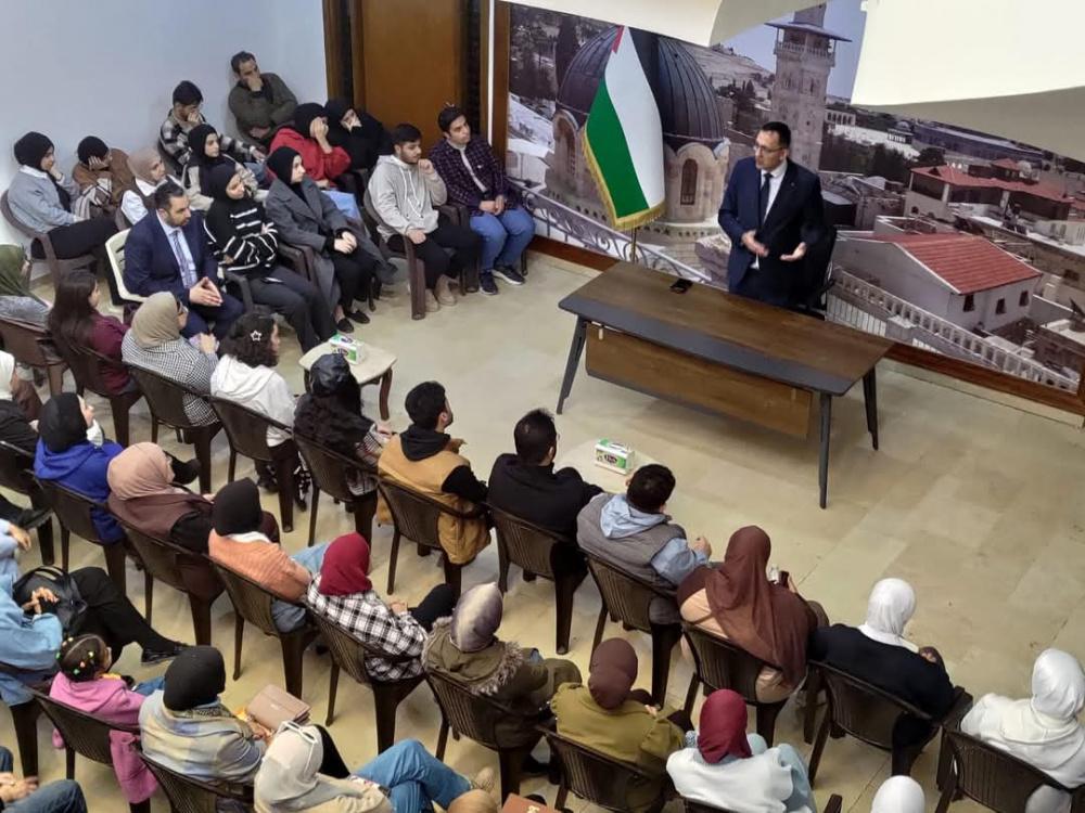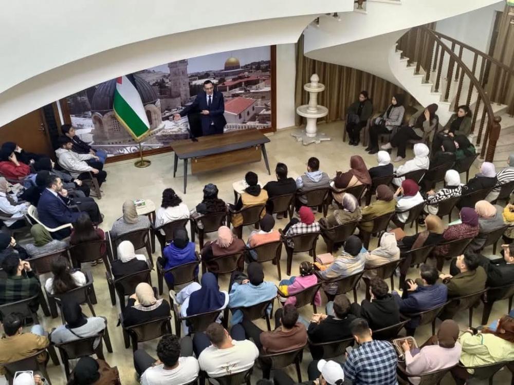 وخلال اللقاء الموسع للسفير الرويضي مع الطلبة ناقش واياهم الأوضاع السياسية وتحركات الرئيس عباس منذ بدء العدوان الاسرائيلي الغاشم على قطاع غزة على كل الاصعده السياسية والقانونية لوقف العدوان ومحاسبة الاحتلال على جريمته، وادخال المساعدات والاعتراف بالدولة الفلسطينية وعاصمتها القدس وتجسيدها على الأرض.