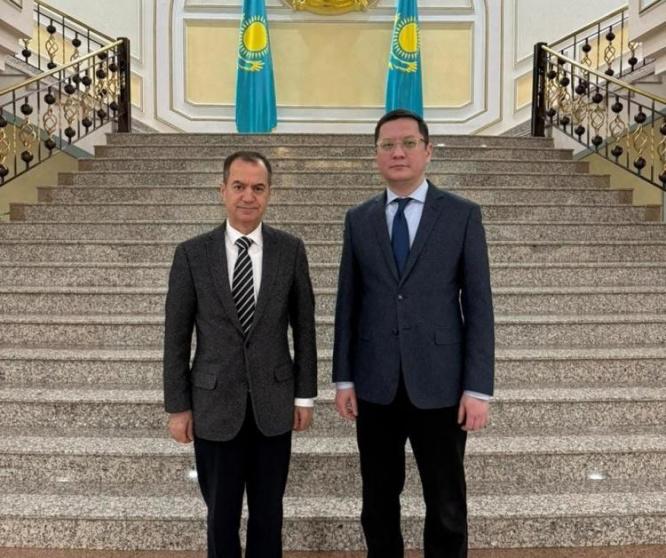التقى سفير دولة فلسطين وعميد السلك الدبلوماسي العربي والأجنبي لدى جمهورية كازاخستان، الدكتور منتصر أبو زيد، مع السيد روان جمعة بيك، مدير إدارة الشرق الأوسط وأفريقيا في وزارة خارجية جمهورية كازاخستان، مساء يوم الجمعة الموافق 31 يناير 2025 في مقر وزارة الخارجية في العاصمة أستانا.