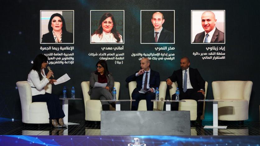 وفي الجلسة الحوارية الثالثة تحدث مدير دارة الاستقرار المالي اياد الزيتاوي، ومدير إدارة الاستراتيجية والتحول الرقمي في بنك فلسطين صخر النمري، مدير عام اتحاد بيتا أماني معدي حول التحديات والفرص المالية في قطاع التكنولوجيا، حيث سيّر الجلسة الحوارية الإعلامية ريما الجمرة.