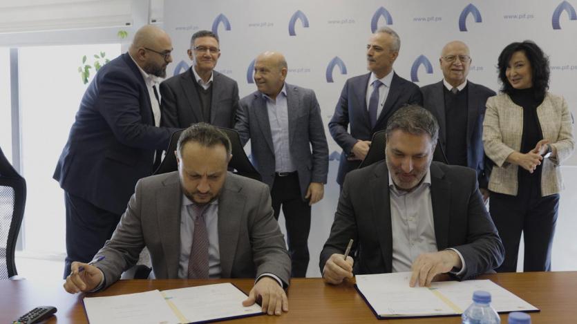 وحضر توقيع الاتفاقية من شركة كهرباء محافظة القدس رئيس مجلس إدارة الشركة المهندس هشام العمري ومديرها العام المهندس محمد زيدان ، و رئيس صندوق الاستثمار الفلسطيني السيد إياد جودة و رئيسة مجلس إدارة شركة مصادر السيدة لنا أبو حجلة ومديرها العام السيد عازم بشارة.