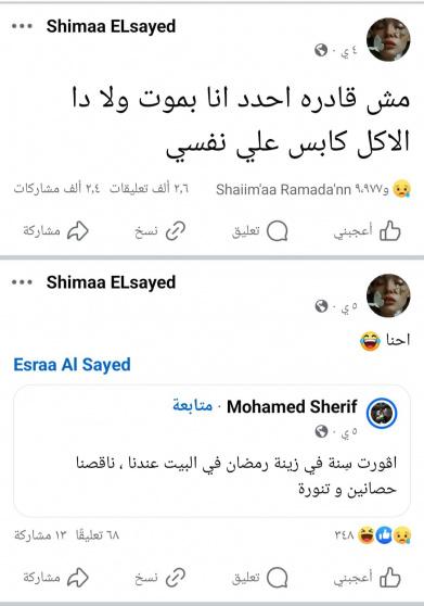 وقبل وفاتها بساعات، كانت المعلمة شيماء قد كتبت منشورا مقتضبا على حسابها الشخصي عبر فيسبوك، جاء فيه: "مش قادره احدد انا بموت ولا دا الاكل كابس علي نفسي".