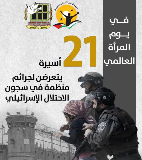 وسلطت هيئة شؤون الأسرى والمحررين، ونادي الأسير، في تقرير مشترك لمناسبة يوم المرأة العالمي، على أبرز القضايا المتعلقة بالظروف الاعتقالية للأسيرات في سجون الاحتلال، والتي تندرج جميعها وبمستويات مختلفة تحت جرائم التّعذيب، والتّجويع، والجرائم الطبيّة الممنهجة، والاعتداءات الجنسيّة بمستوياتها المختلفة، هذا عدا عن عمليات القمع والاقتحامات المتكررة لزنازين الأسيرات، وعمليات السّلب والحرمان الممنهجة، وأساليب التّعذيب النفسيّ التي برزت بحقّهن منذ لحظة اعتقالهن.
