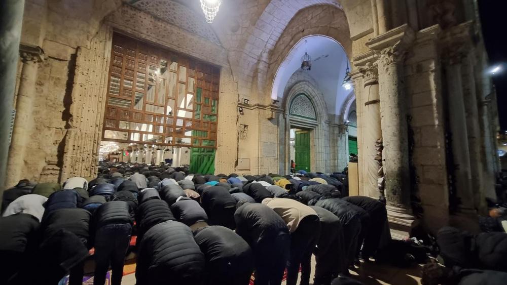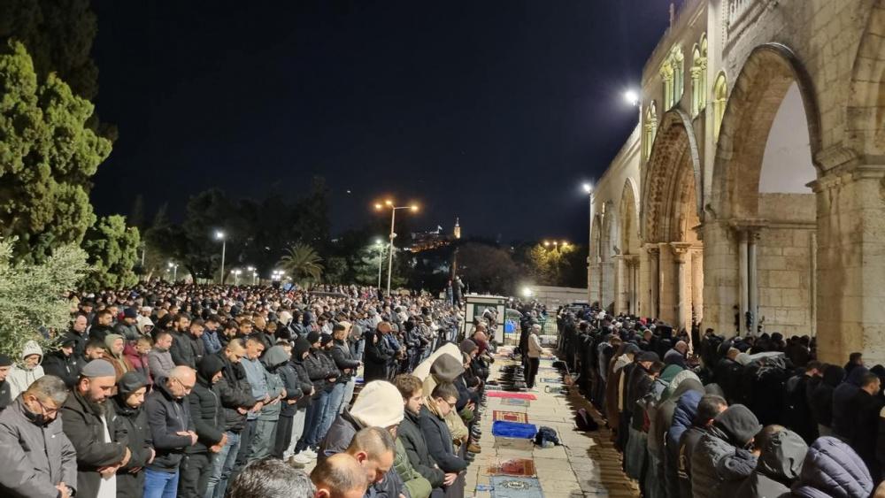 آلاف المواطنين يؤدون صلاتي العشاء والتراويح في المسجد الأقصى