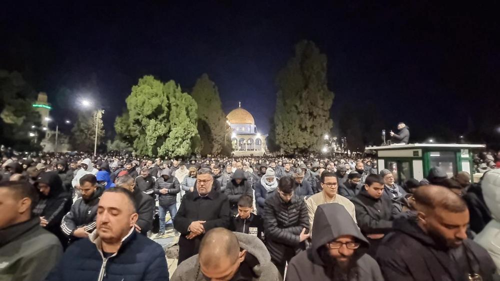 وأفادت دائرة الأوقاف الإسلامية في القدس بأن آلاف المواطنين أدوا صلاتي العشاء والتراويح في المسجد الأقصى، رغم البرد الشديد.