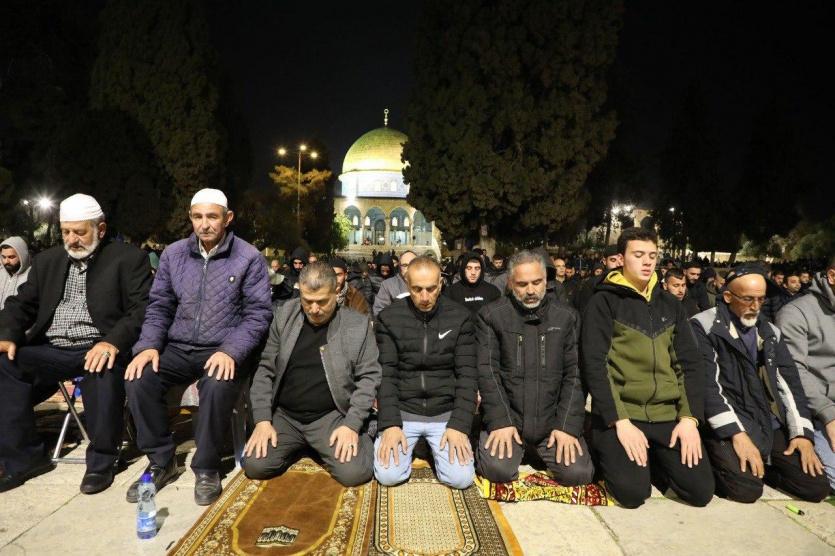 عشرات الآلاف يؤدون صلاتي العشاء والتراويح في المسجد الأقصى