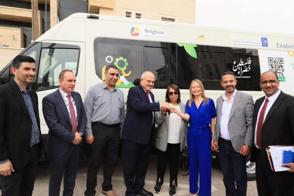 سلم وزير الحكم المحلي د. سامي حجاوي، سيارات متنقلة للصيانة تعتبر الاولى من نوعها ولصالح خمسة مجالس خدمات مشتركة في المحافظات الشمالية شملت كل من: القدس، والخليل، وبيت لحم، ونابلس، وطوباس، وذلك بتمويل من الحكومة البلجيكية عبر وكالة التنمية البلجيكية Enabel in Palestine وبتنفيذ من صندوق تطوير واقراض الهيئات المحلية ضمن برنامج تطوير البلديات المرحلة الرابعة، النافذة الثالثة لدعم مشاريع الحد من التغير المناخي.