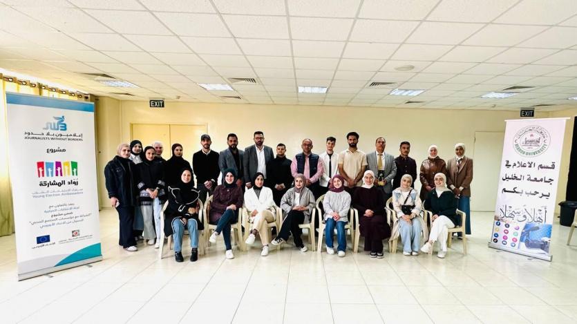 أطلقت مؤسسة "إعلاميون بلا حدود"، اليوم الخميس، مشروع "رُوّاد المشاركة – سفراء الانتخابات الشباب" بالتعاون مع لجنة الانتخابات المركزية، وبدعم من الاتحاد الأوروبي، وذلك في جامعتي الخليل وبوليتكنك فلسطين.