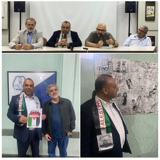 و شكر السوداني في نهاية اللقاء الفواعل الثقافية والإبداعية والفنية البرازيلية لوقوفها مع عدالة القضية الفلسطينية وثقافتها المقاومة في ظل التضليل الإعلامي الاحتلالي وتوابعه في العالم ، مثمناً دور الفنانين البرازيليين بما يقدمونه من إبداعات توثق الإبادة في غزة و دور اتحاد كتاب البرازيل وترجمته لقصص لكتاب ومبدعي غزة وكذلك دار طبلة لللنشر واهتمامها بنشر ترجمات الأدب الفلسطيني في غزة وما يقوم به الروائي والأكاديمي والمترجم ميلتون حاطوم من دعم للقضية والثقافة الفلسطينية وكذلك المترجمة والأكاديمية د. صفاء جبران ترجماتها للأدب الفلسطيني متجاورة مع الأكاديمي والمترجم البروفيسور محمد الجاروش في إسناد ودعم القضية وثقافة فلسطين.