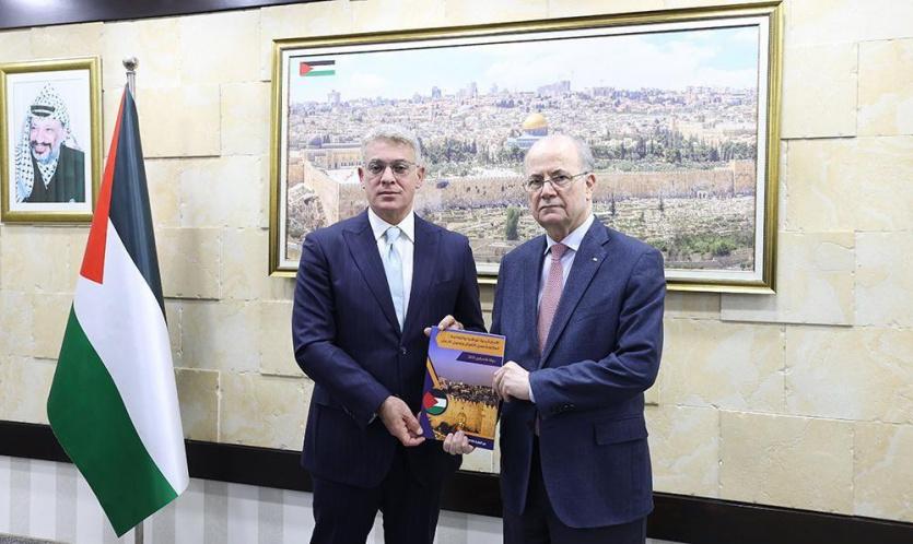 سَلّم معالي محافظ سلطة النقد رئيس اللجنة الوطنية السيد يحيى شنار، دولة رئيس الوزراء د. محمد مصطفى، تقرير التحديث الوطني لتقييم المخاطر والاستراتيجية الوطنية، بحضور رئيس الفريق الوطني لتقييم المخاطر مدير وحدة المتابعة المالية د. فراس مرار، وعدد من أعضاء اللجنة الوطنية والفريق الوطني.