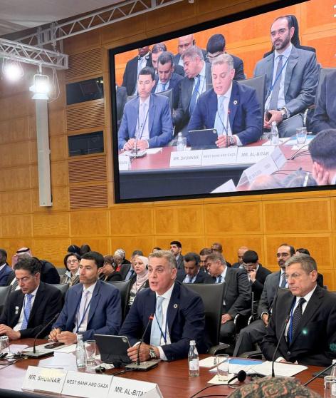 جاء ذلك خلال إلقائه كلمة دولة فلسطين في اجتماع محافظي البنوك المركزية ووزراء المالية لدول منطقة الشرق الأوسط وشمال إفريقيا (MENAP)، بحضور المديرة التنفيذية لصندوق النقد الدولي السيدة كريستالينا جورجيفا، ضمن فعاليات اجتماعات الربيع لصندوق النقد الدولي والبنك الدولي، والمنعقدة حالياً في العاصمة الأميركية واشنطن.