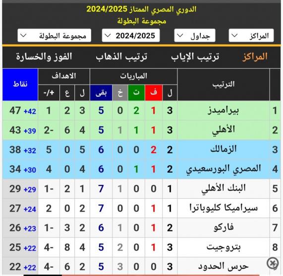 نتيجة مباراة الأهلي وبتروجيت: ترتيب الدوري المصري 2025