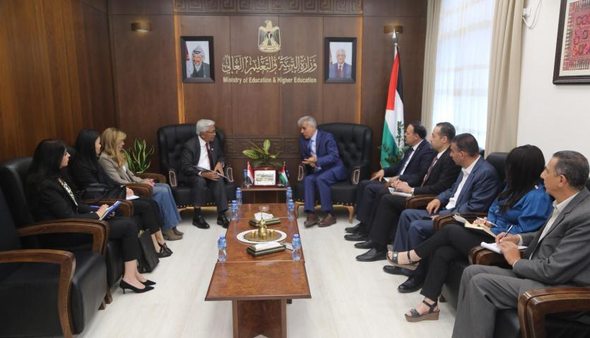 وتطرق إلى واقع التحديات الماثلة ومُجمل الانتهاكات الاحتلالية بحق قطاع التعليم؛ وما شهدته المدارس والجامعات في قطاع غزة من تدمير، واستهداف الكوادر والعلماء والطلبة، كما بحث مع السفير الضيف زيادة عدد المنح الجامعية، والتركيز على البرامج والتخصصات النوعية التي تلبي متطلبات سوق العمل الفلسطينية.